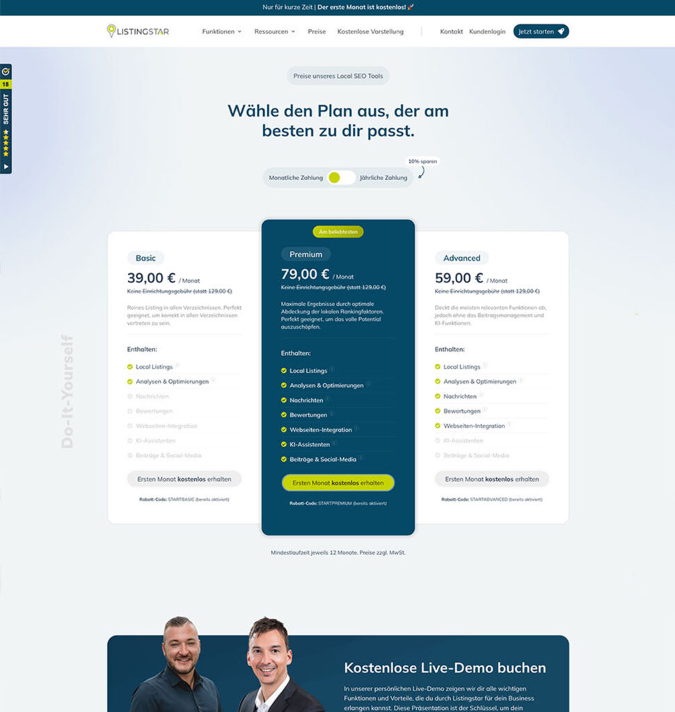- Neugestaltung der Preise-Seite auf Listingstar