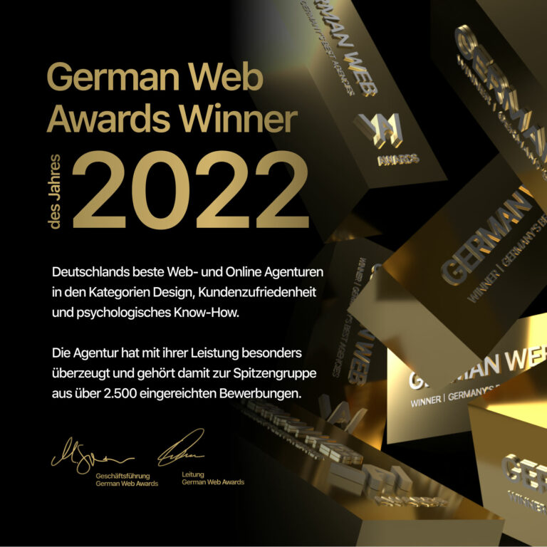 Die German Web Awards zeichnen jedes Jahr die besten Web- und Online-Agenturen Deutschlands aus – aus über 2.500 Firmen werden nur die herausragendsten prämiert.