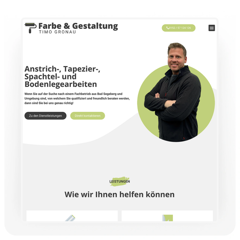 Ja, deine Website wird von Anfang an für Suchmaschinen optimiert (OnPage-SEO). Zusätzlich bieten wir die Möglichkeit, eine kontinuierliche SEO-Betreuung zu buchen, die monatlich stattfindet und durch weitere Maßnahmen zur Verbesserung deiner Online-Sichtbarkeit ergänzt wird.